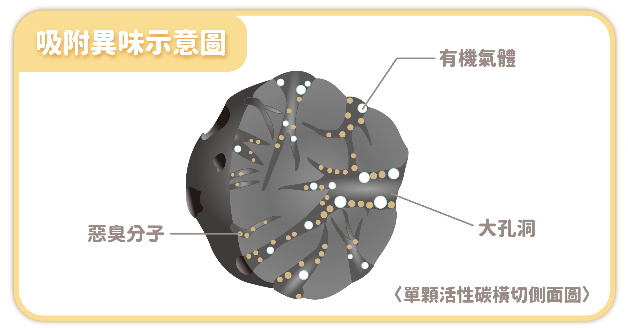 而活性碳口罩主要是藉由活性碳素材本身的特質"吸附"空氣中異味來阻隔空氣中有害氣體分子。