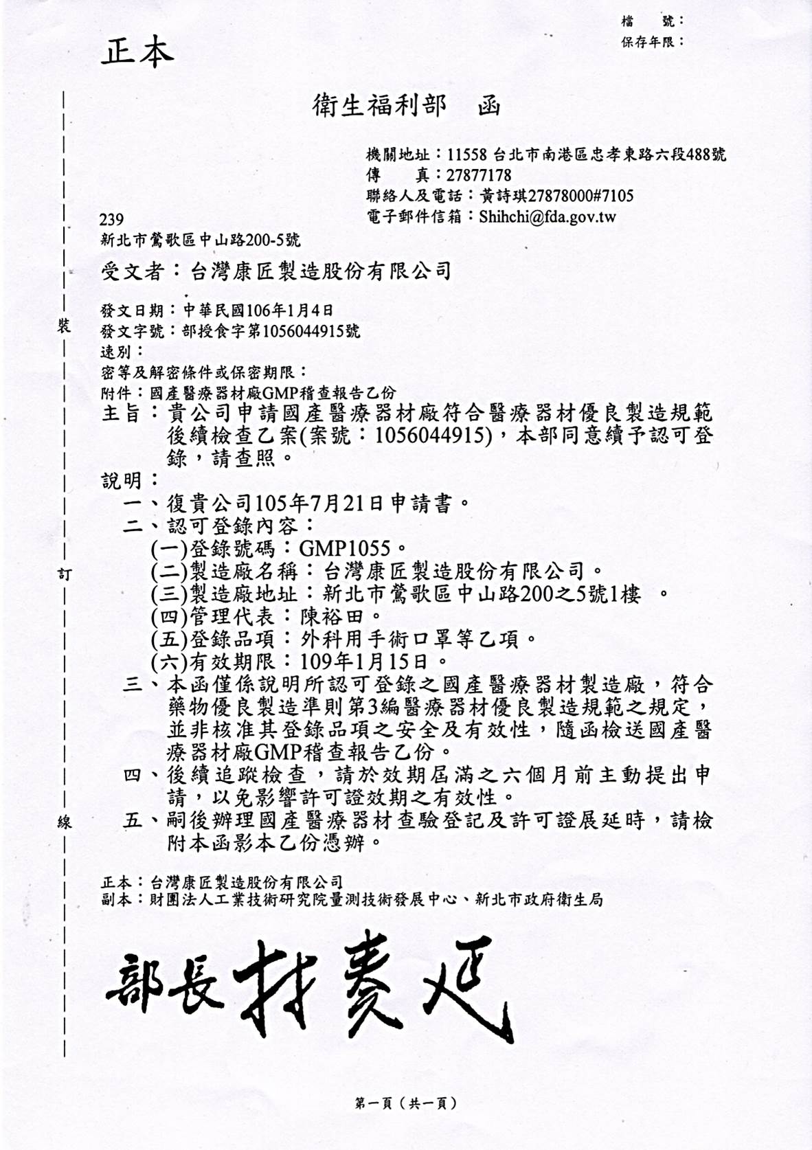 通過衛生署醫療GMP認證也同時代表了對於口罩品質的保障。
