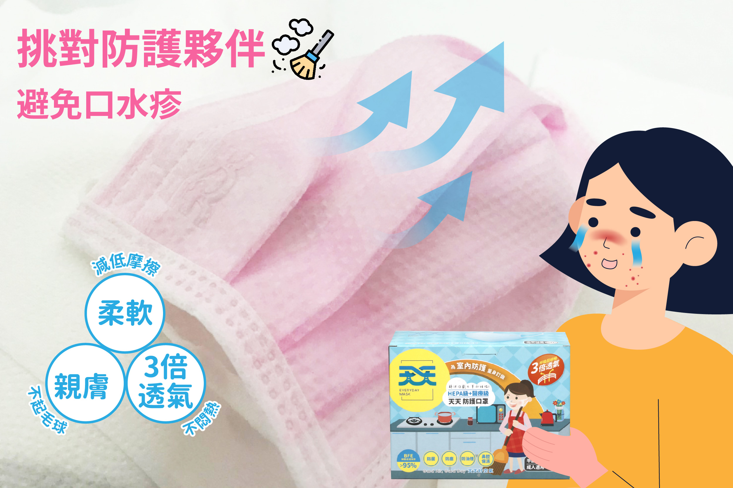 建議挑選不易起毛邊的口罩,