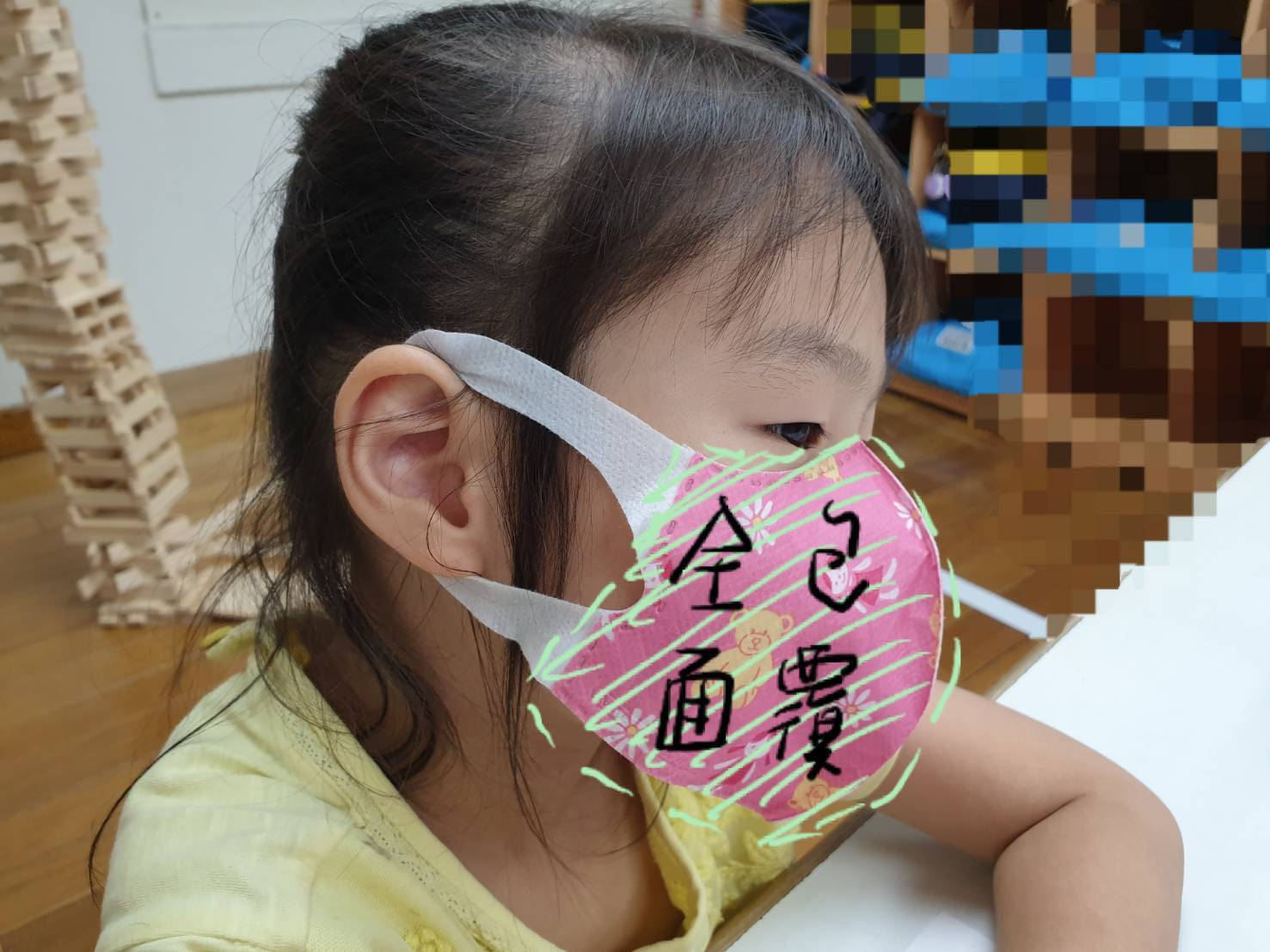 有一天班上有個小女孩戴著粉紅色、看起覆蓋度100的口罩來學校,